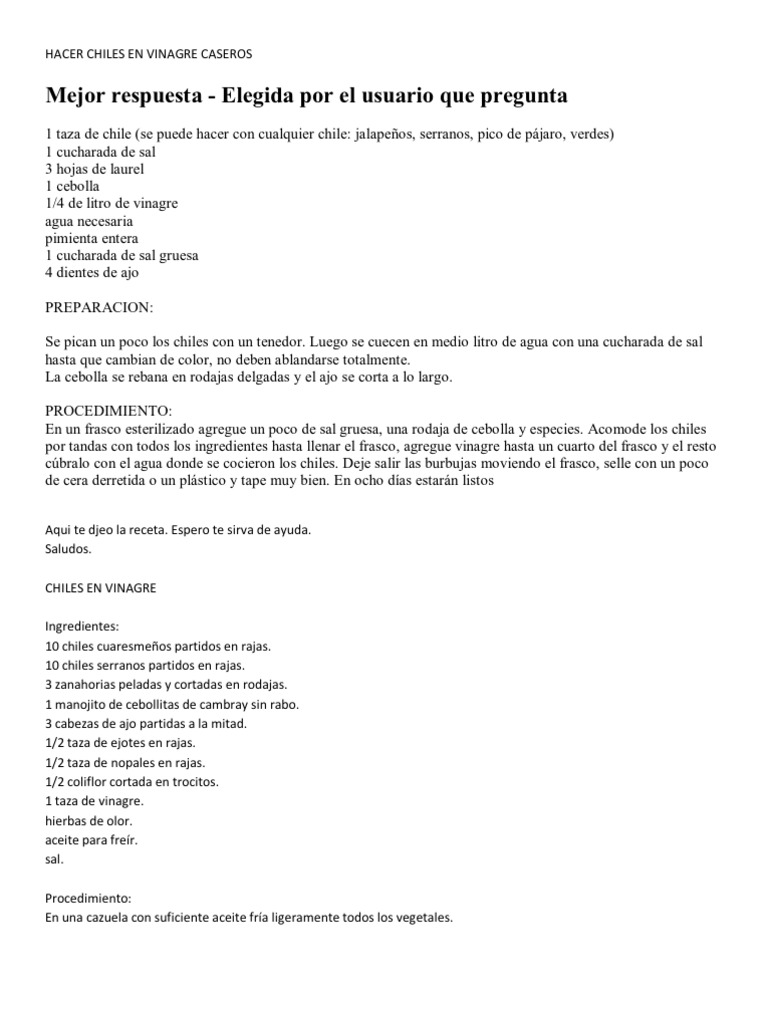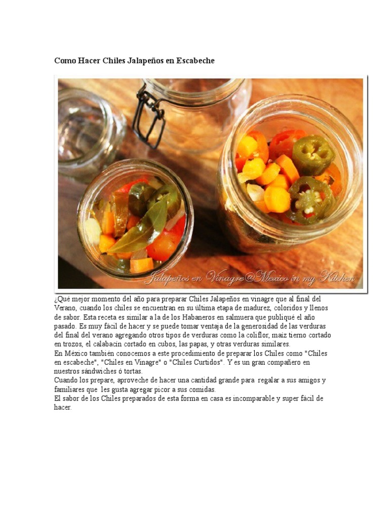 Chiles Jalapenos En Escabeche Facil