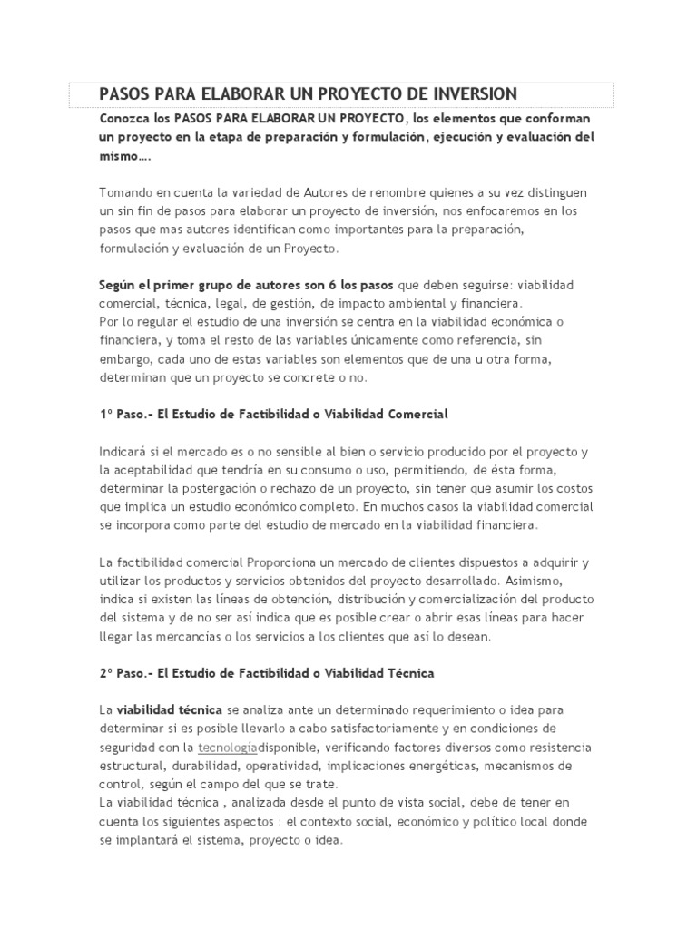 Como Hacer Un Proyecto De Inversion Ejemplo Compartir Ejemplos