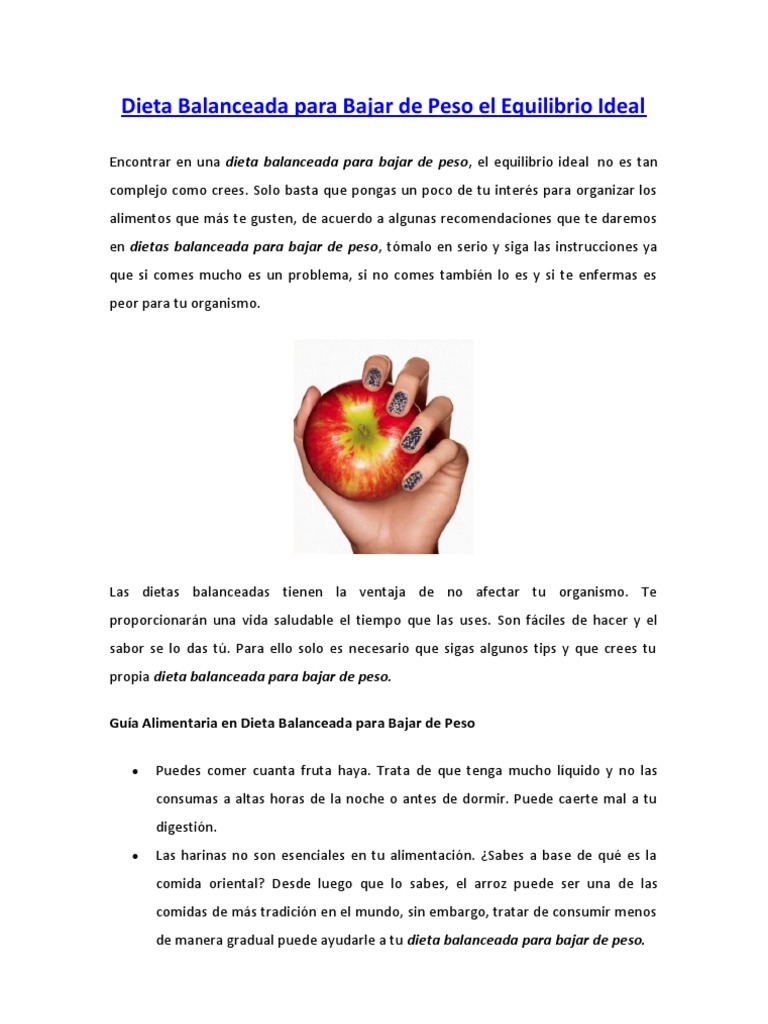 Usa El Sentido Comun Y Comer Una Dieta Balanceada Para Bajar De Peso